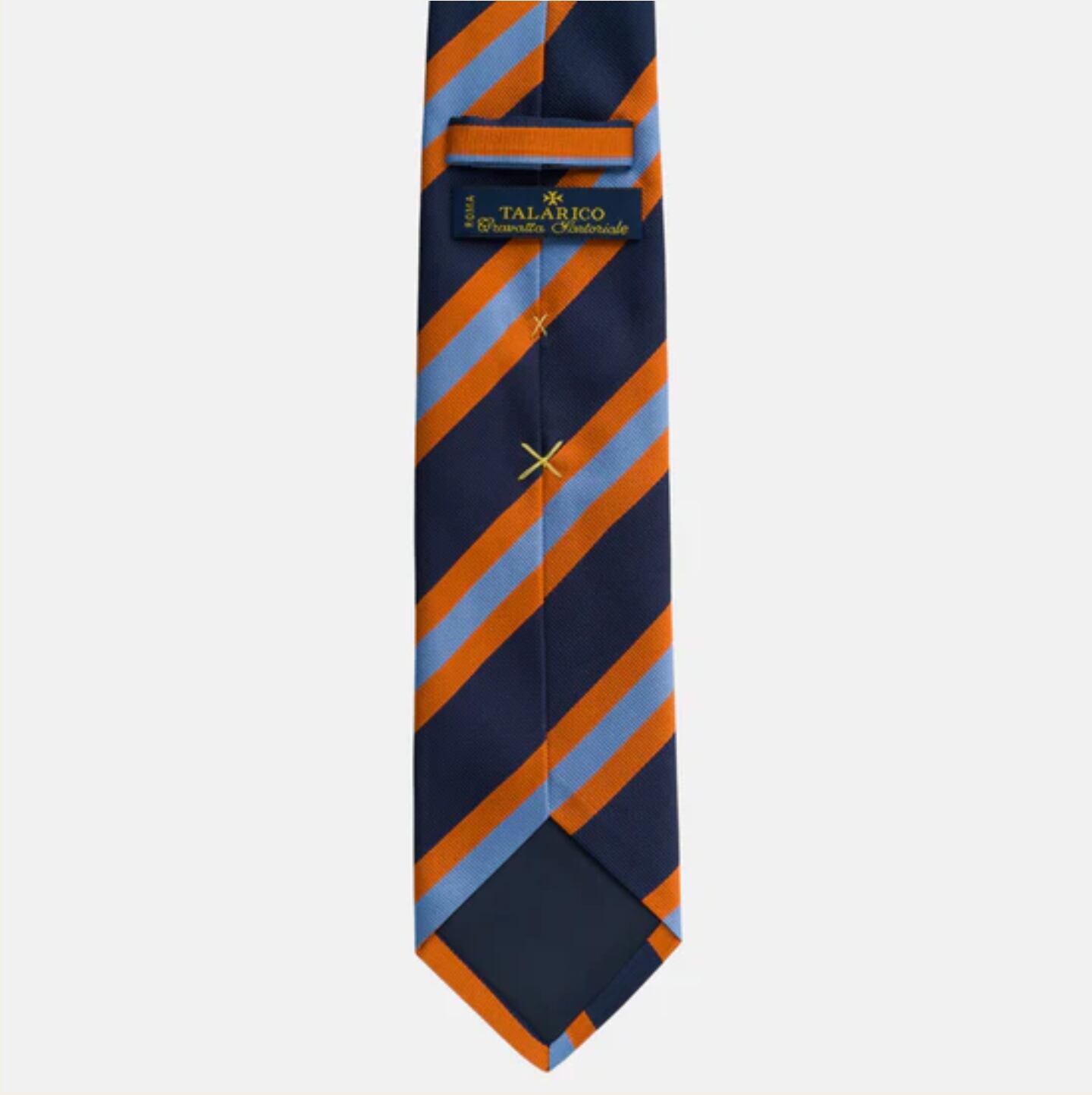 Le cravatte Talarico Regimental sono realizzate in solo 3 esemplari per Variante. Il tessuto è in seta twill 36 once prodotto in Italia.
