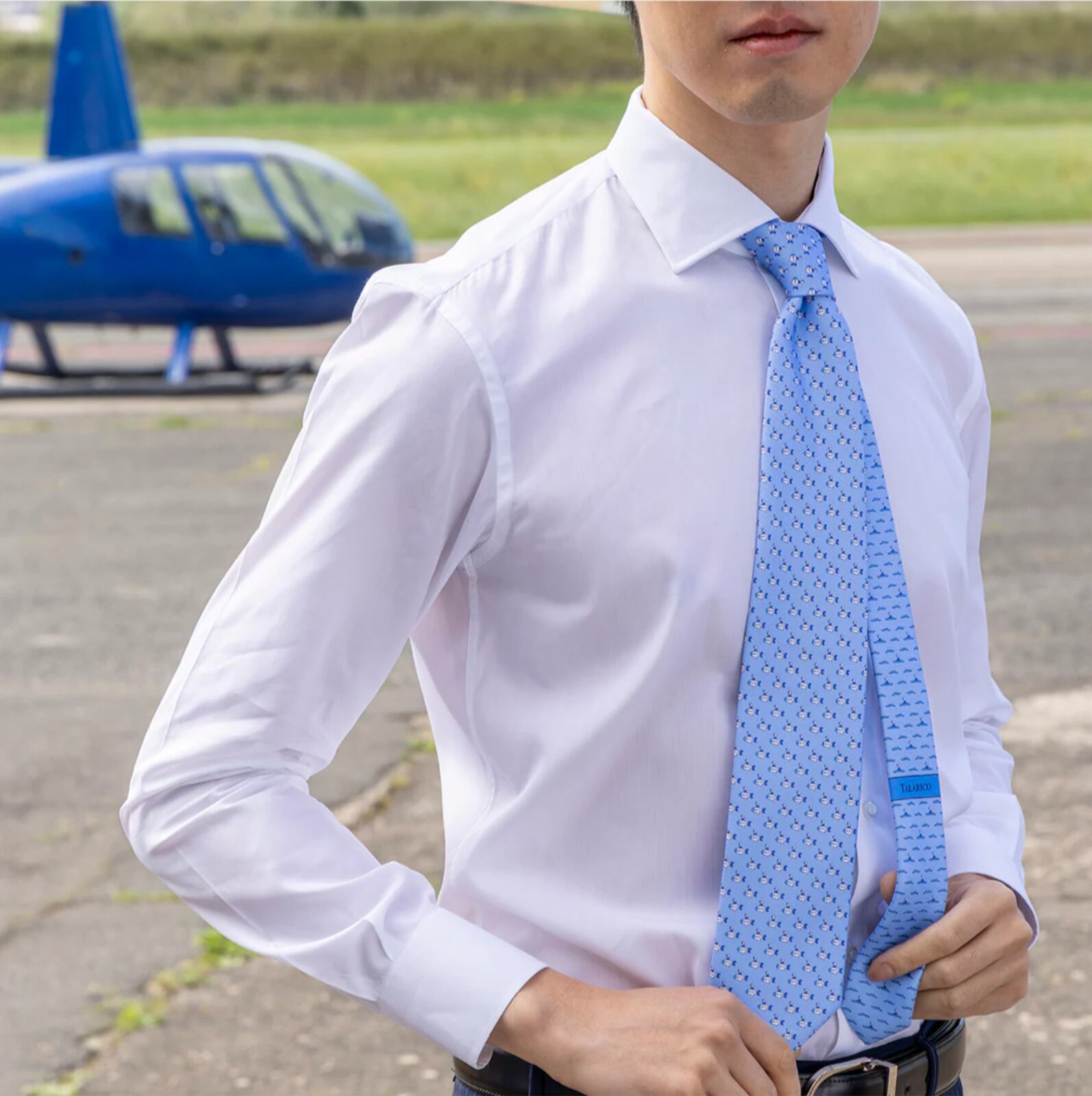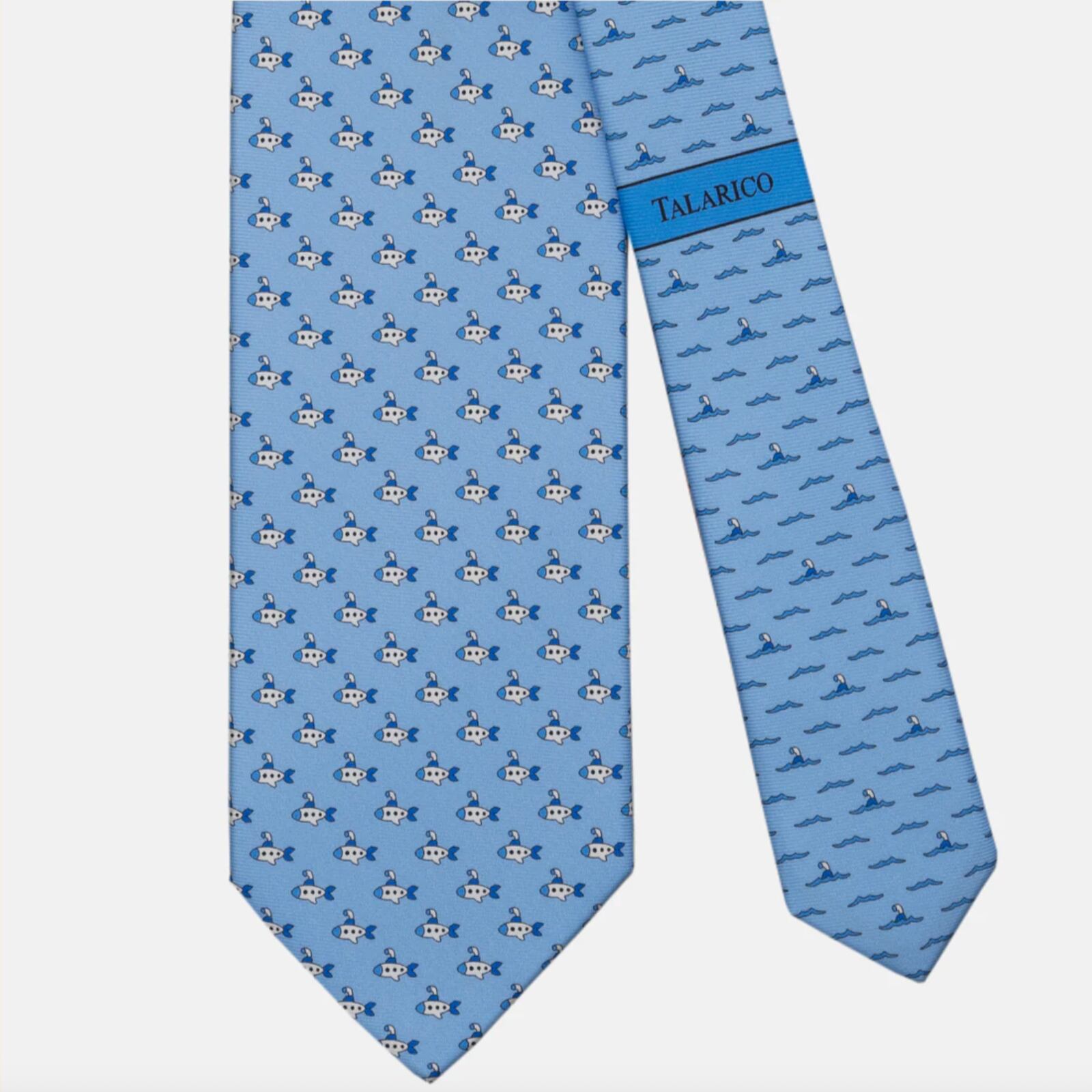 Maurizio TALARICO Collection 3-fold Tie in Silk Submarine Pattern Light Blue