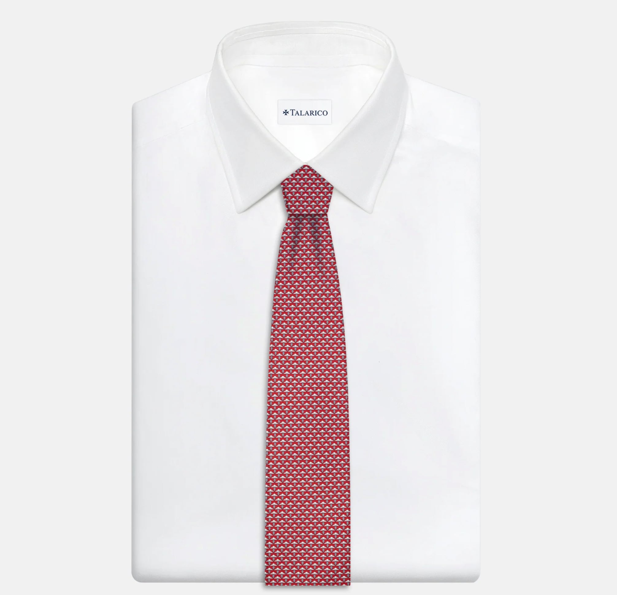 「3つ折り」ネクタイは、シルクで作られたクラシックなネクタイです。1メートルの生地から手作業で裁断・縫製し、隅から角まで3回折ります。イタリア コモ産のシルク生地を贅沢に使用しています。オールハンドメイドのため、大量生産をせず、1本1本に時間をかけて丁寧に作っています。1つの柄は4本しか作らないタラリコのこだわりがあり、世界での流通量には限りがあります。シルクの滑らかさとしっかりとした生地はノットを美しくみせ、最高の締め心地。そして、とてもエグゼクティブな印象をあたえます。