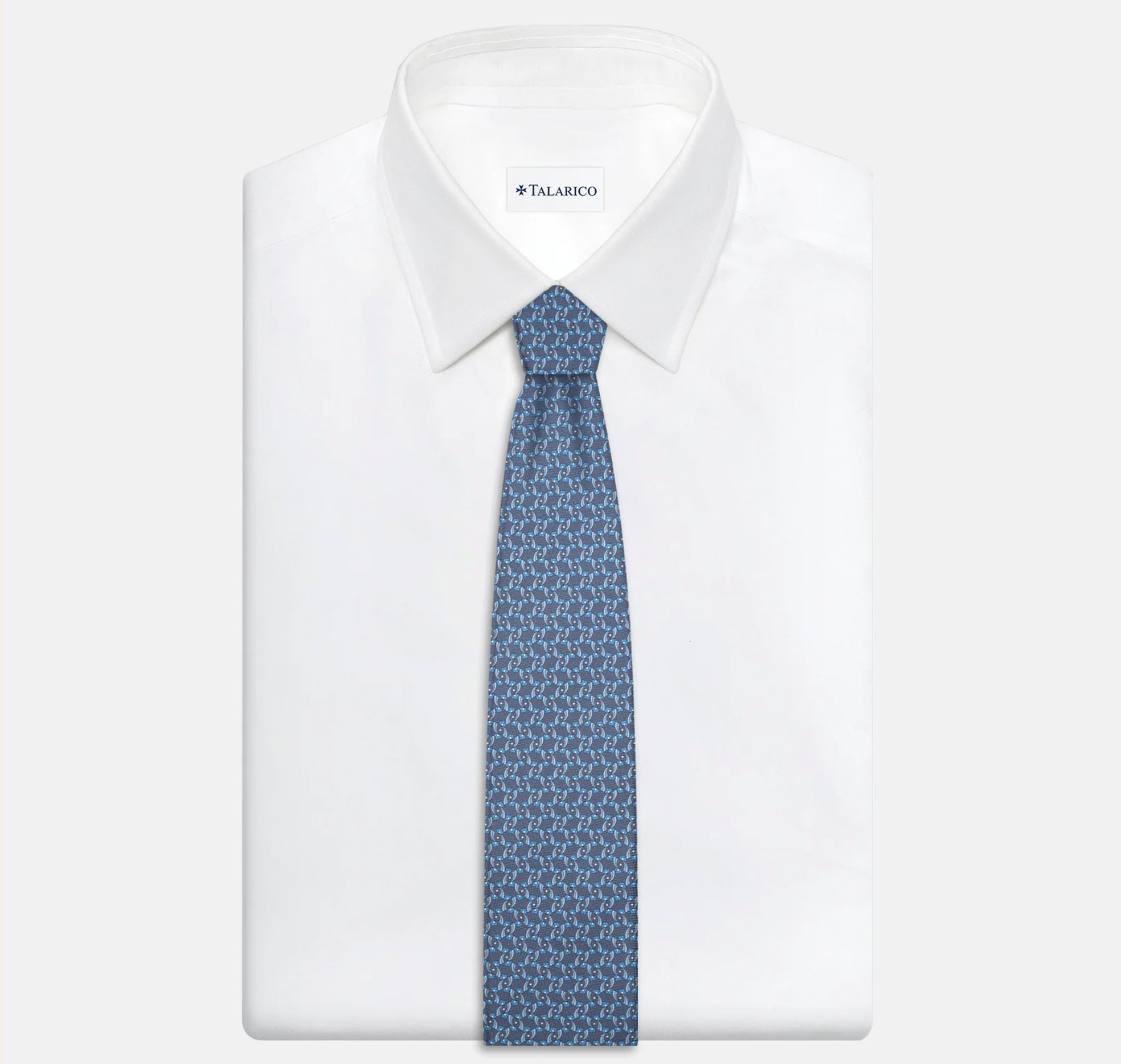 「3つ折り」ネクタイは、シルクで作られたクラシックなネクタイです。1メートルの生地から手作業で裁断・縫製し、隅から角まで3回折ります。イタリア コモ産のシルク生地を贅沢に使用しています。オールハンドメイドのため、大量生産をせず、1本1本に時間をかけて丁寧に作っています。1つの柄は4本しか作らないタラリコのこだわりがあり、世界での流通量には限りがあります。シルクの滑らかさとしっかりとした生地はノットを美しくみせ、最高の締め心地。そして、とてもエグゼクティブな印象をあたえます。