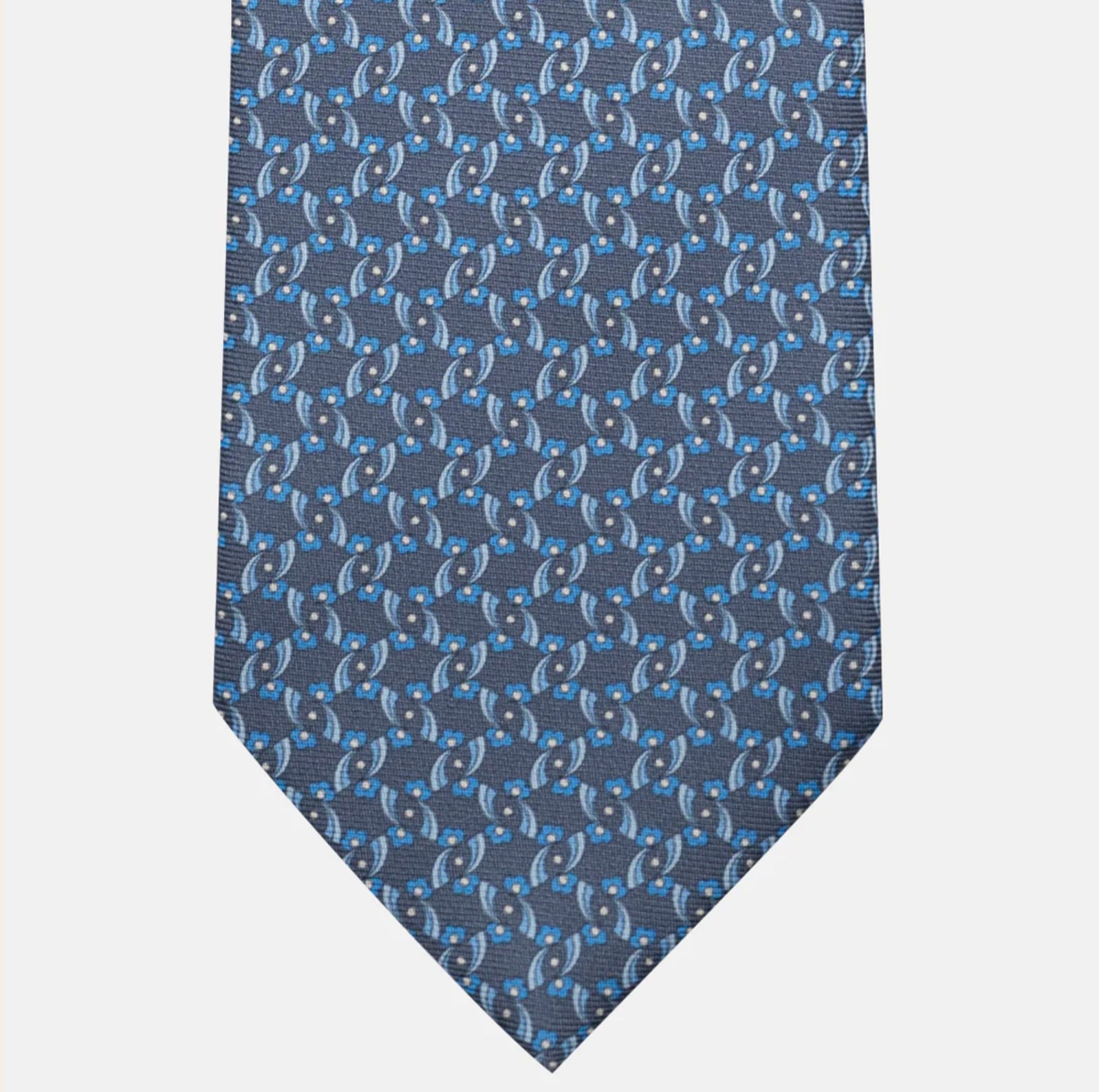 3-Fold Silk Tie, Floral Pattern, Grey - JA056337-9
