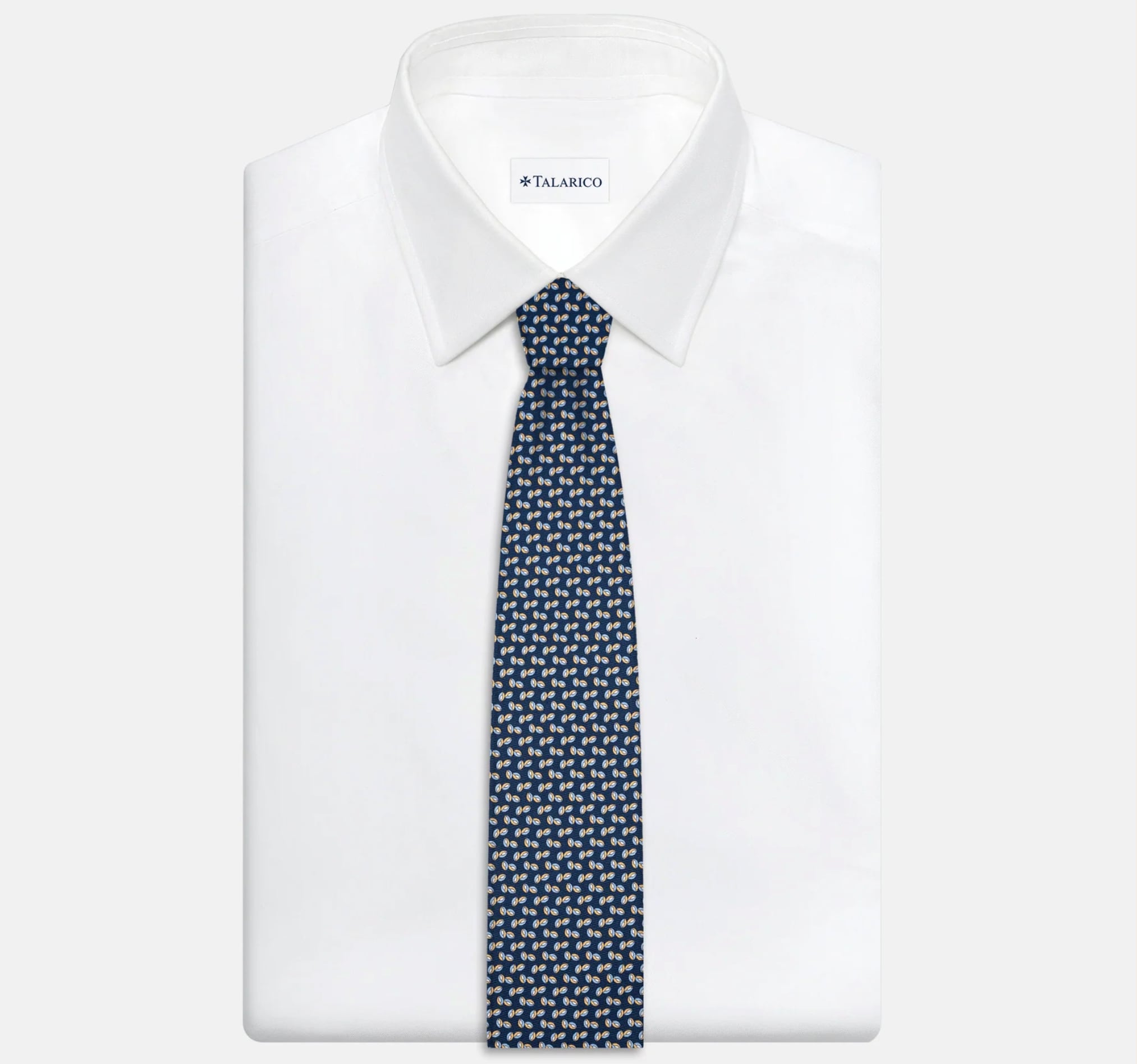 「3つ折り」ネクタイは、シルクで作られたクラシックなネクタイです。1メートルの生地から手作業で裁断・縫製し、隅から角まで3回折ります。イタリア コモ産のシルク生地を贅沢に使用しています。オールハンドメイドのため、大量生産をせず、1本1本に時間をかけて丁寧に作っています。1つの柄は4本しか作らないタラリコのこだわりがあり、世界での流通量には限りがあります。シルクの滑らかさとしっかりとした生地はノットを美しくみせ、最高の締め心地。そして、とてもエグゼクティブな印象をあたえます。
