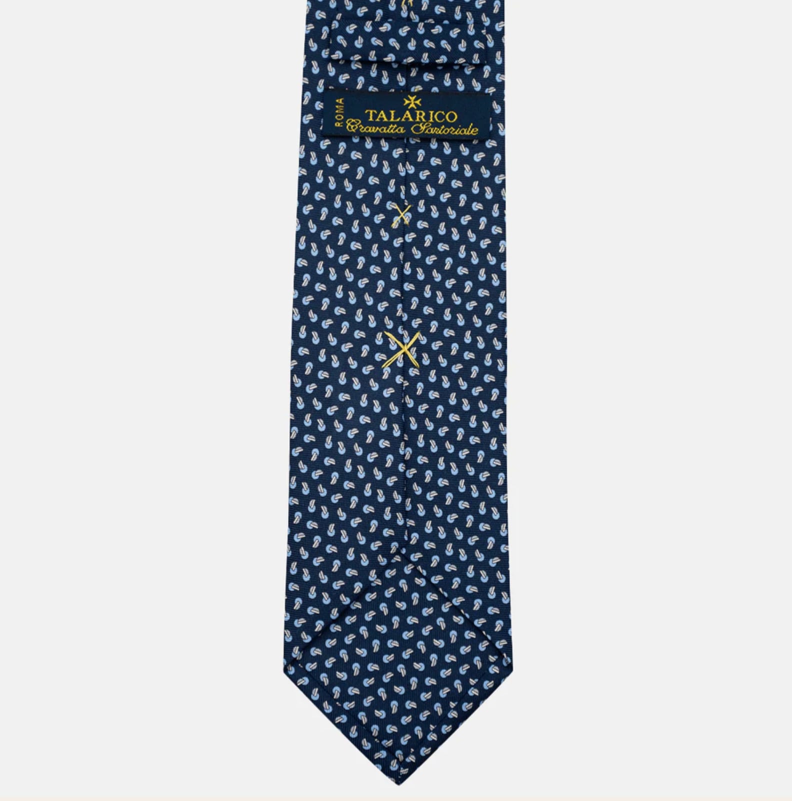 Le cravatte Talarico Regimental sono realizzate in solo 3 esemplari per Variante. Il tessuto è in seta twill 36 once prodotto in Italia.
