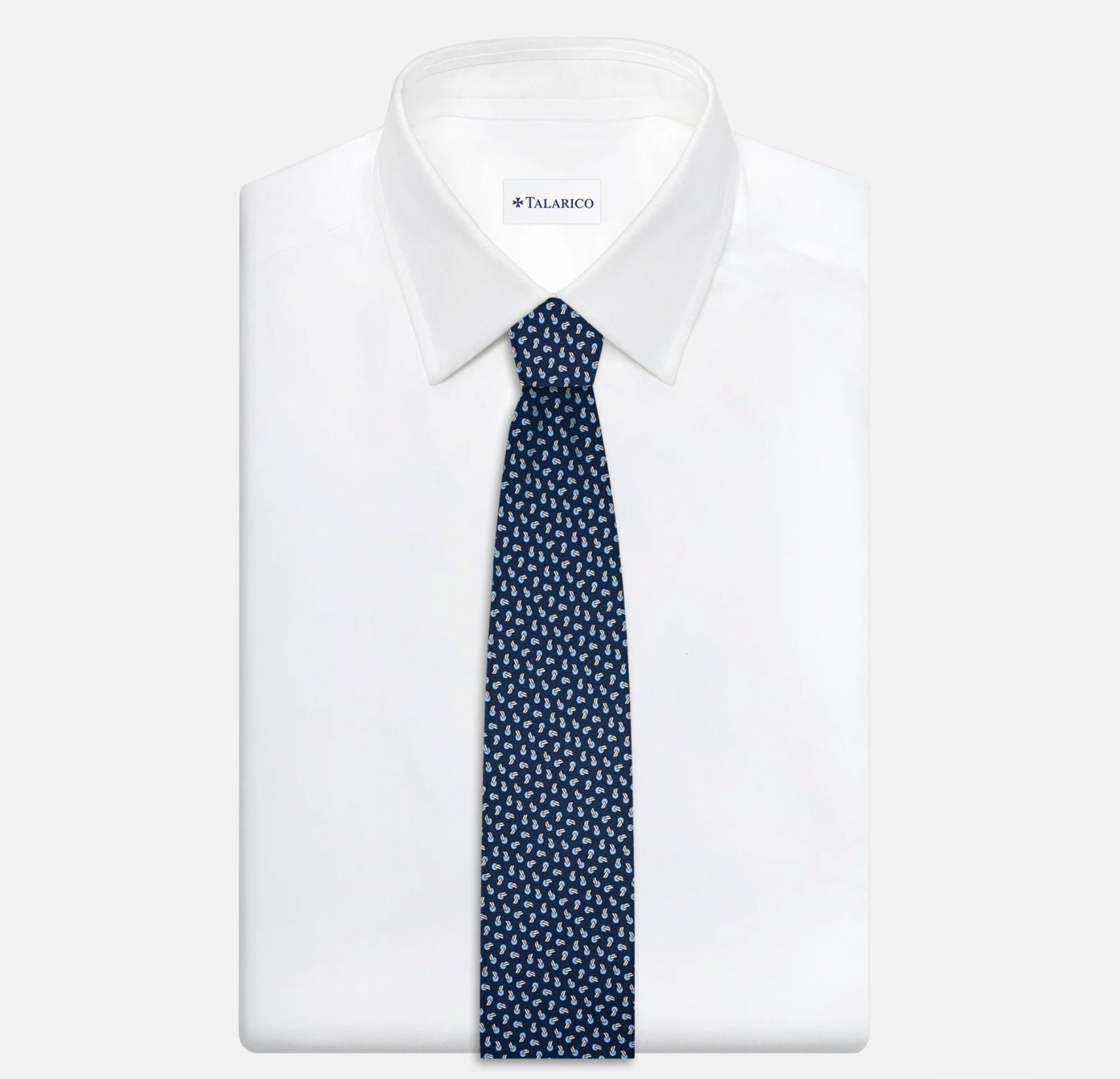 「3つ折り」ネクタイは、シルクで作られたクラシックなネクタイです。1メートルの生地から手作業で裁断・縫製し、隅から角まで3回折ります。イタリア コモ産のシルク生地を贅沢に使用しています。オールハンドメイドのため、大量生産をせず、1本1本に時間をかけて丁寧に作っています。1つの柄は4本しか作らないタラリコのこだわりがあり、世界での流通量には限りがあります。シルクの滑らかさとしっかりとした生地はノットを美しくみせ、最高の締め心地。そして、とてもエグゼクティブな印象をあたえます。