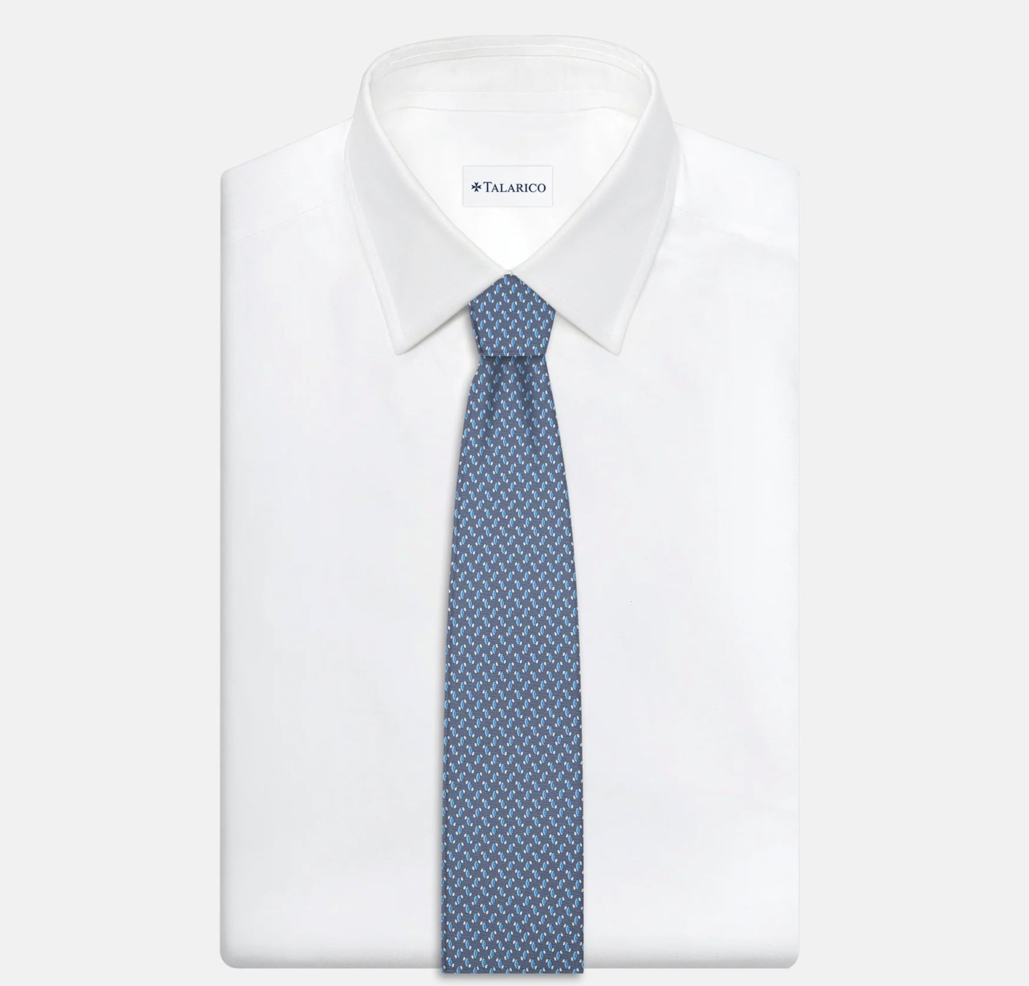 「3つ折り」ネクタイは、シルクで作られたクラシックなネクタイです。1メートルの生地から手作業で裁断・縫製し、隅から角まで3回折ります。イタリア コモ産のシルク生地を贅沢に使用しています。オールハンドメイドのため、大量生産をせず、1本1本に時間をかけて丁寧に作っています。1つの柄は4本しか作らないタラリコのこだわりがあり、世界での流通量には限りがあります。シルクの滑らかさとしっかりとした生地はノットを美しくみせ、最高の締め心地。そして、とてもエグゼクティブな印象をあたえます。